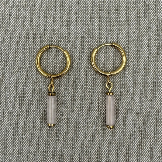 Unique Rose Quartz Hoops